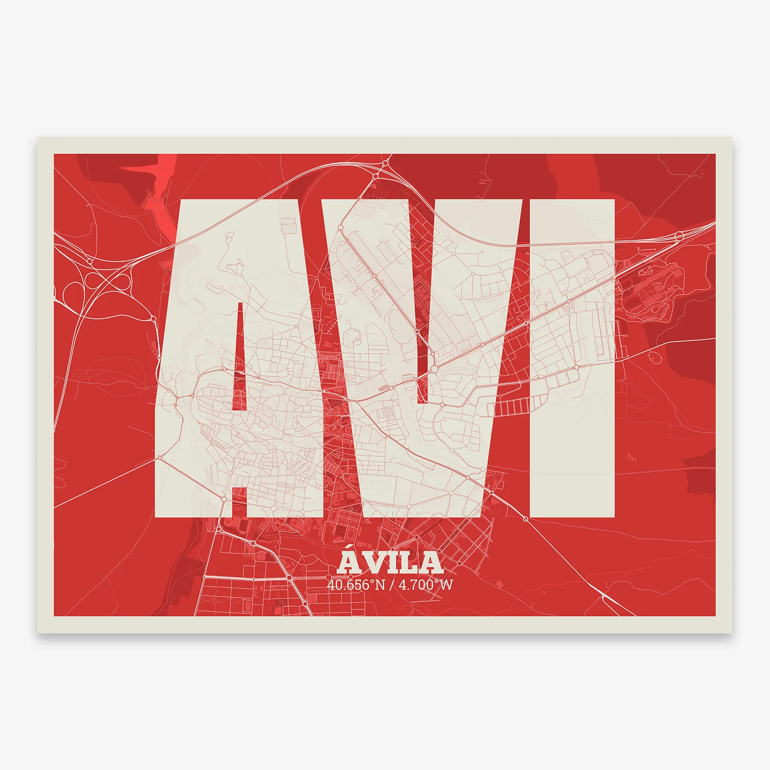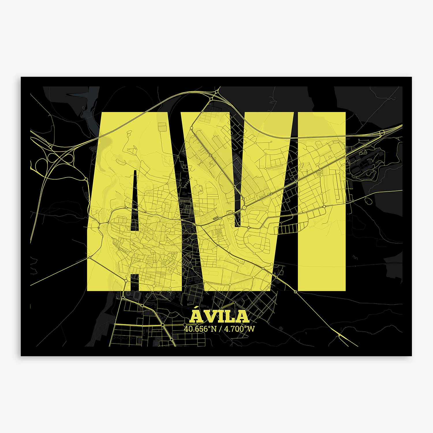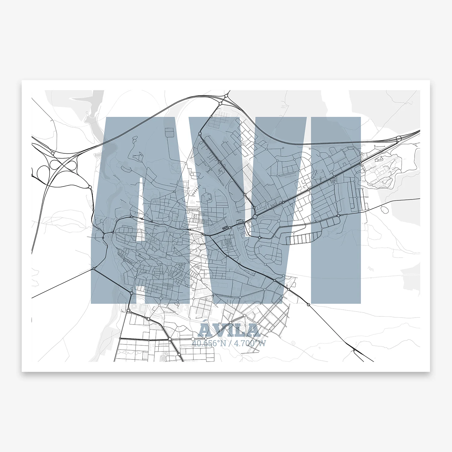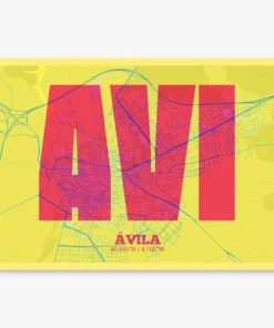 Personalize this Avila Poster V02, designed with a composition of the map of Avila and the letters AVI or purchase it with this graphic design ready to add to your cart. A special gift to decorate the walls of lovers of graphic design and typography.