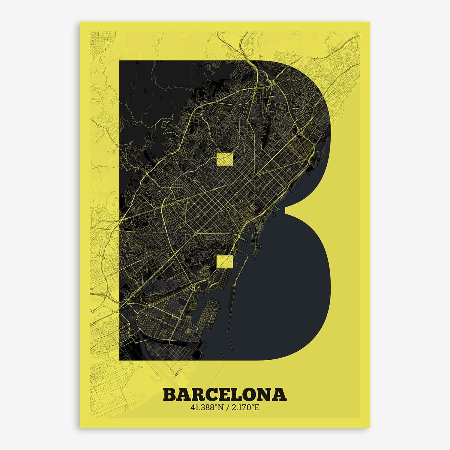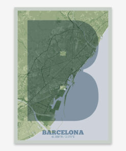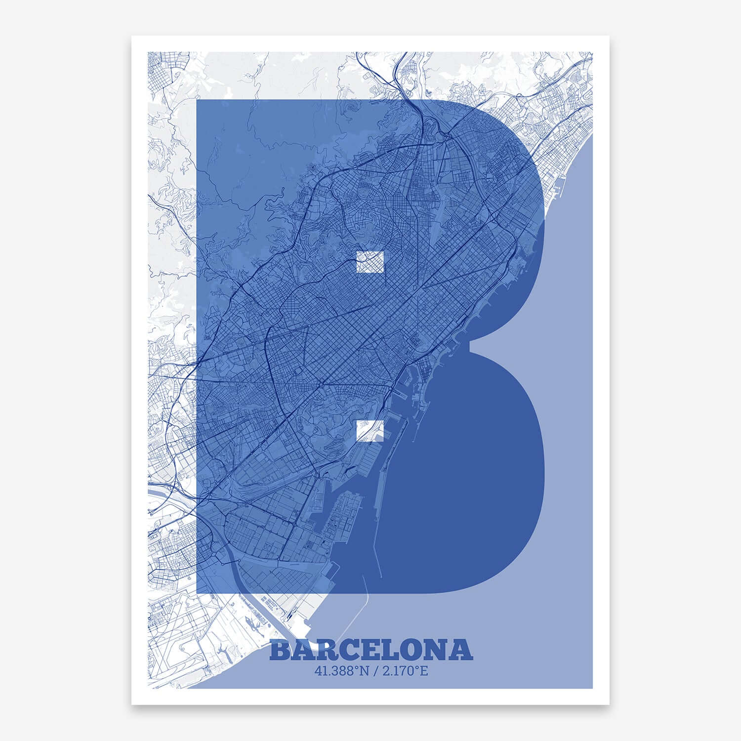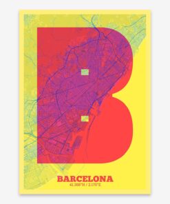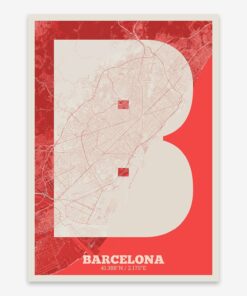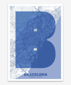 Personalize this Barcelona Poster V02, designed with a composition of the map of Barcelona and the letter B or purchase it with this graphic design ready to add to your cart. A special gift to decorate the walls of lovers of graphic design and typography.