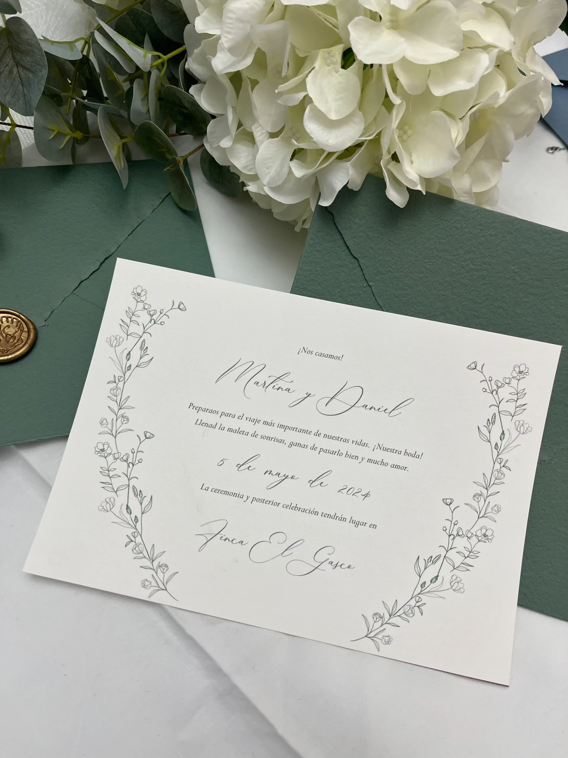 El precio incluye la invitación, los sobres van por separado, estaremos encantados de asesorarte de cuál es el más indicado para tu invitación.