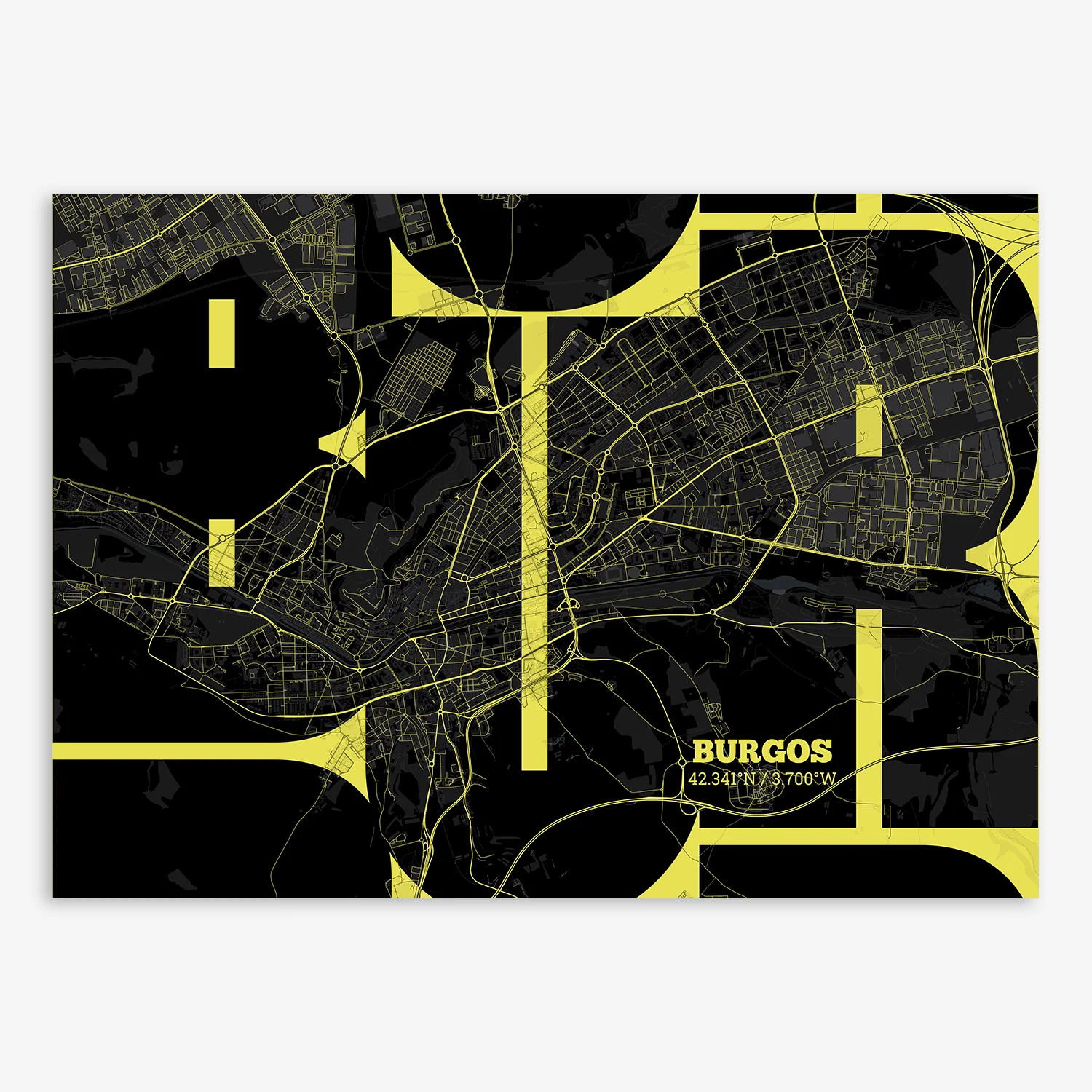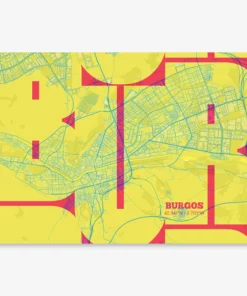 Personalize this Burgos Poster V03, designed with a composition of the map of Burgos and the letters BUR or purchase it with this graphic design ready to add to your cart. A special gift to decorate the walls of lovers of graphic design and typography.