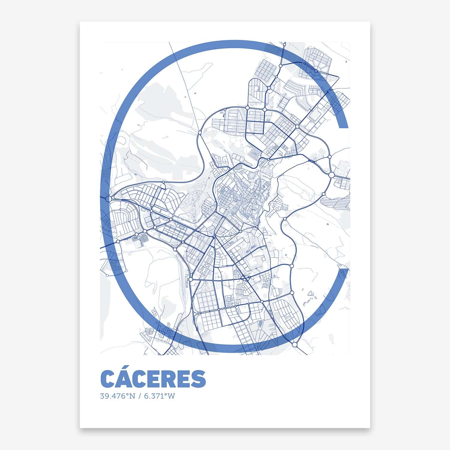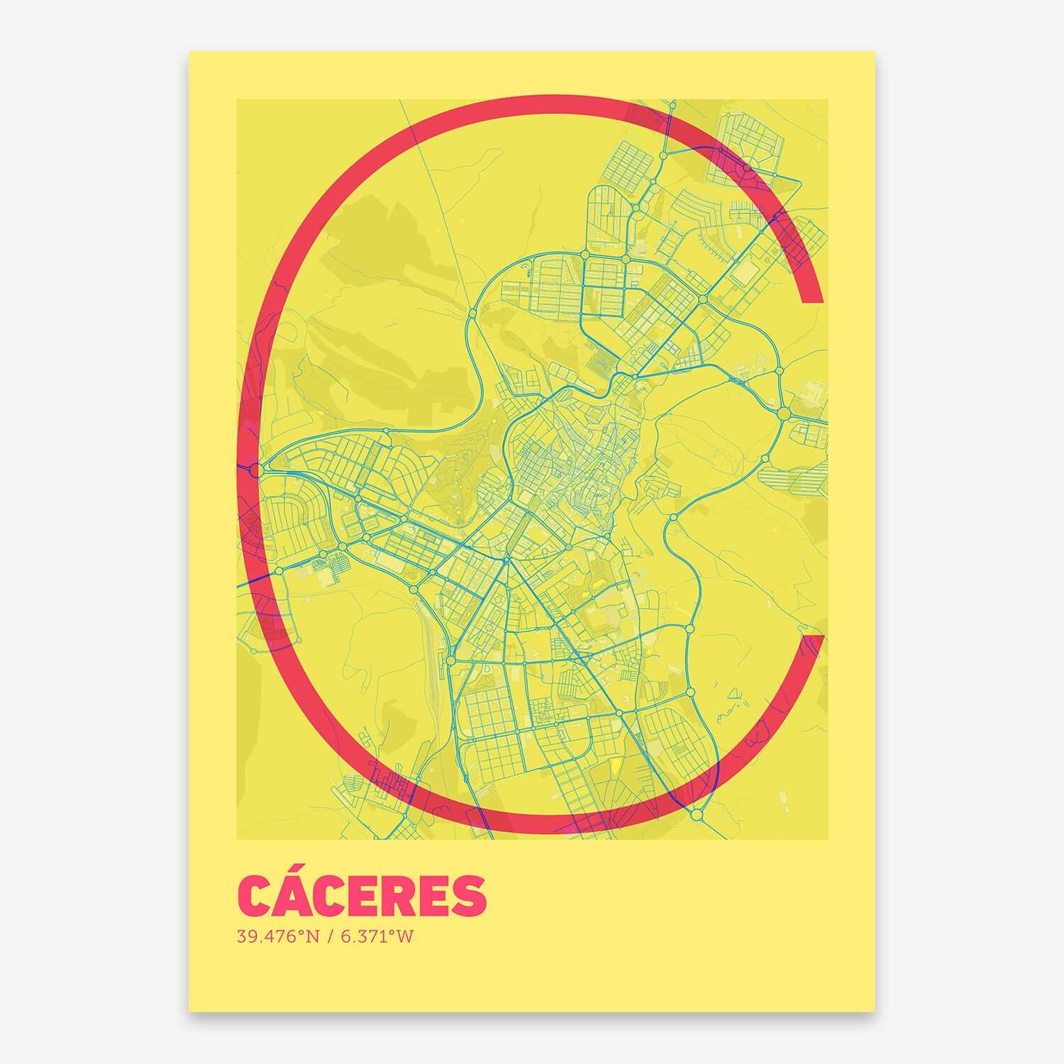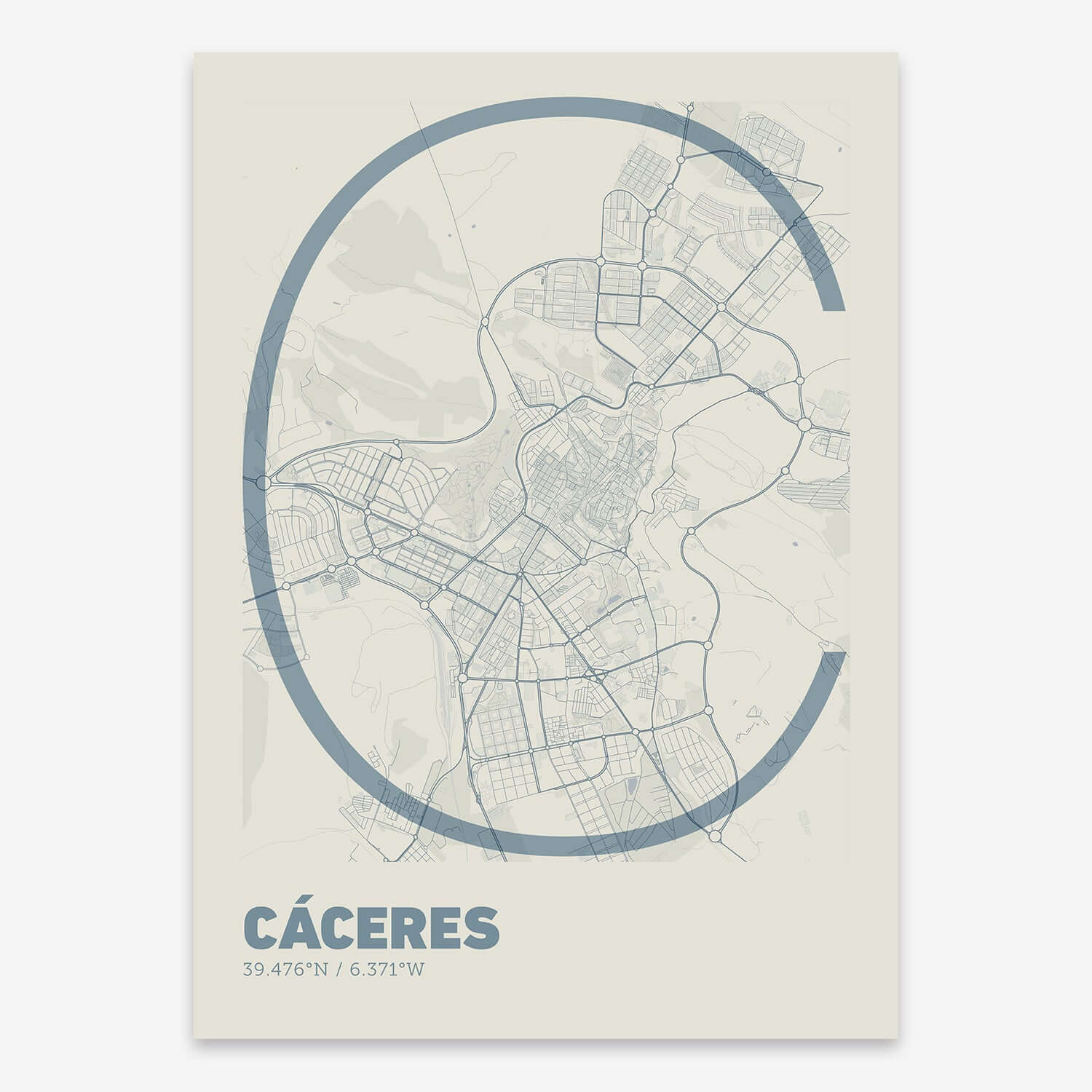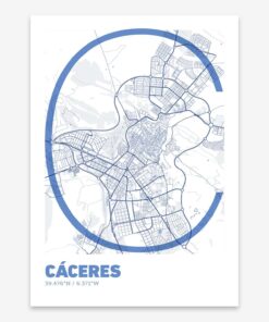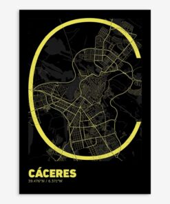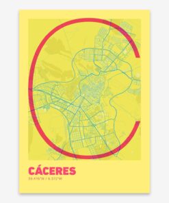 Personalize this Caceres Poster V07, designed with a composition of the map of Caceres and the letter C or purchase it with this graphic design ready to add to your cart. A special gift to decorate the walls of lovers of graphic design and typography.
