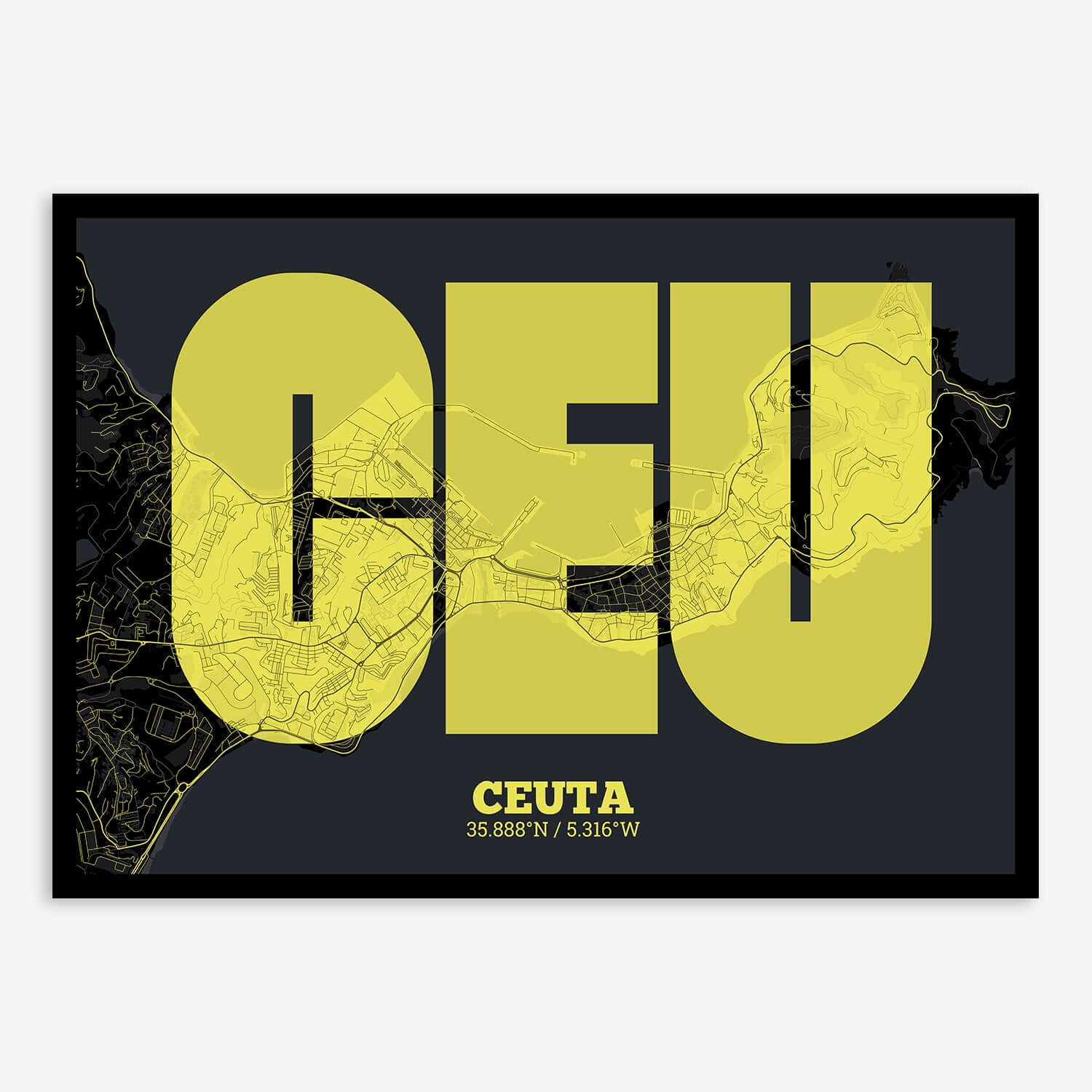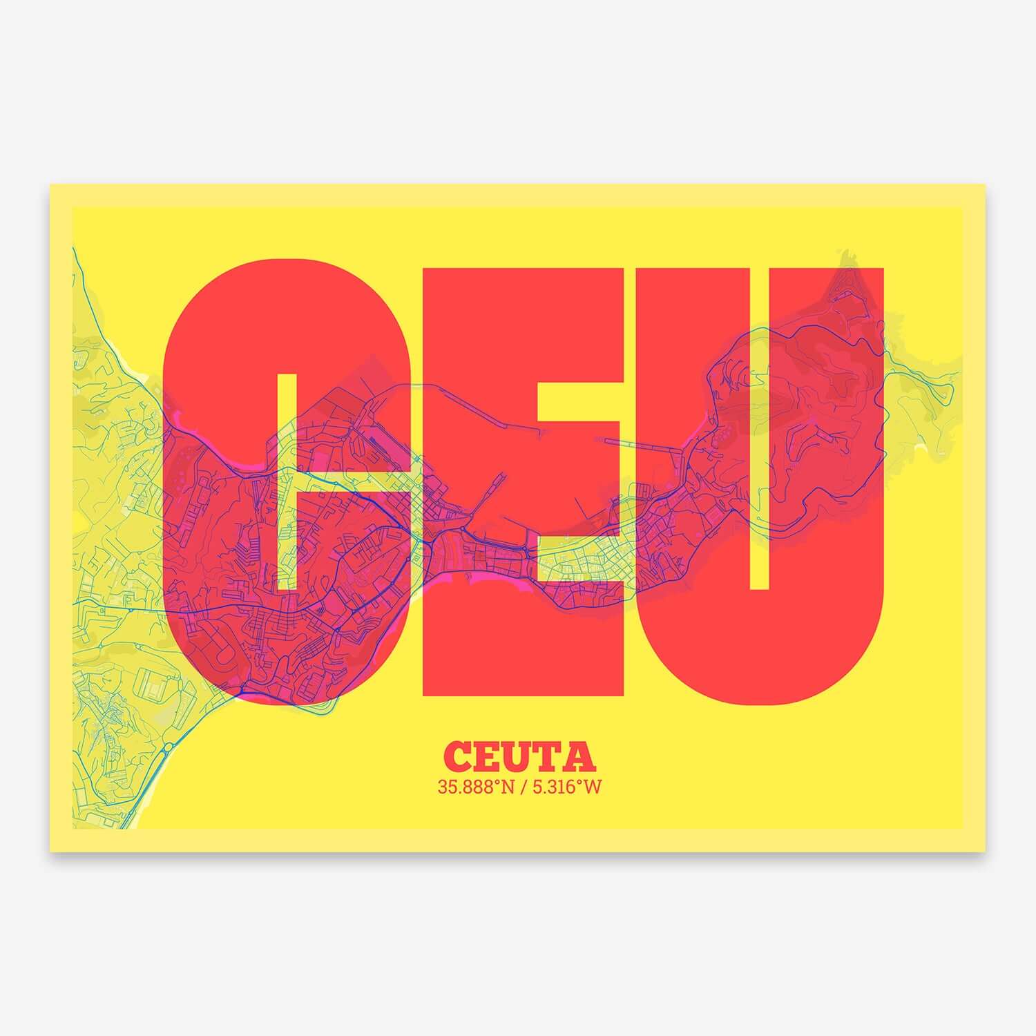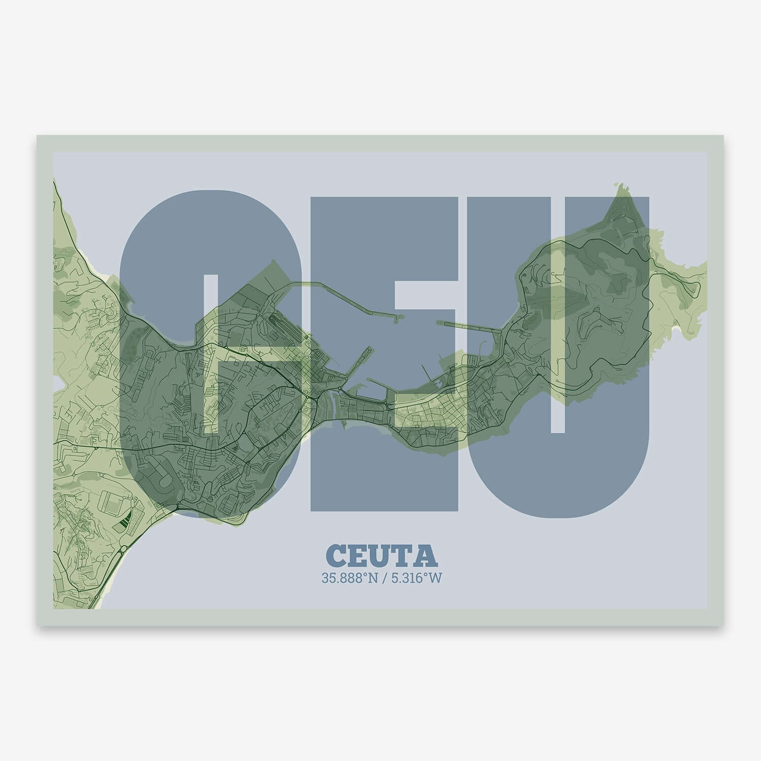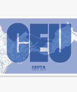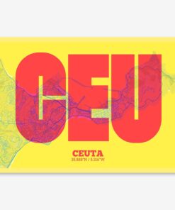 Personalize this Ceuta Poster V02, designed with a composition of the map of Ceuta and the letter CEU or purchase it with this graphic design ready to add to your cart. A special gift to decorate the walls of lovers of graphic design and typography.