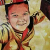 Cuando iniciamos nuestro viaje al Sáhara, todo un equipo de voluntarios fuimos con la idea de dar y compartir todo lo que teníamos; sobre todo nuestro amor y cariño a cada persona. La hospitalidad de los saharauis nos dejo sin palabras y a medida que pasaban los días de nuestra aventura, repetíamos una y otra vez la siguiente frase: “Hemos recibido más de lo que pudimos dar”. Esta pintura está inspirada en un momento de risas y juegos en un campamento de refugiados antes de volver a España, con una puesta de sol atesoramos cada instante de esta despedida.