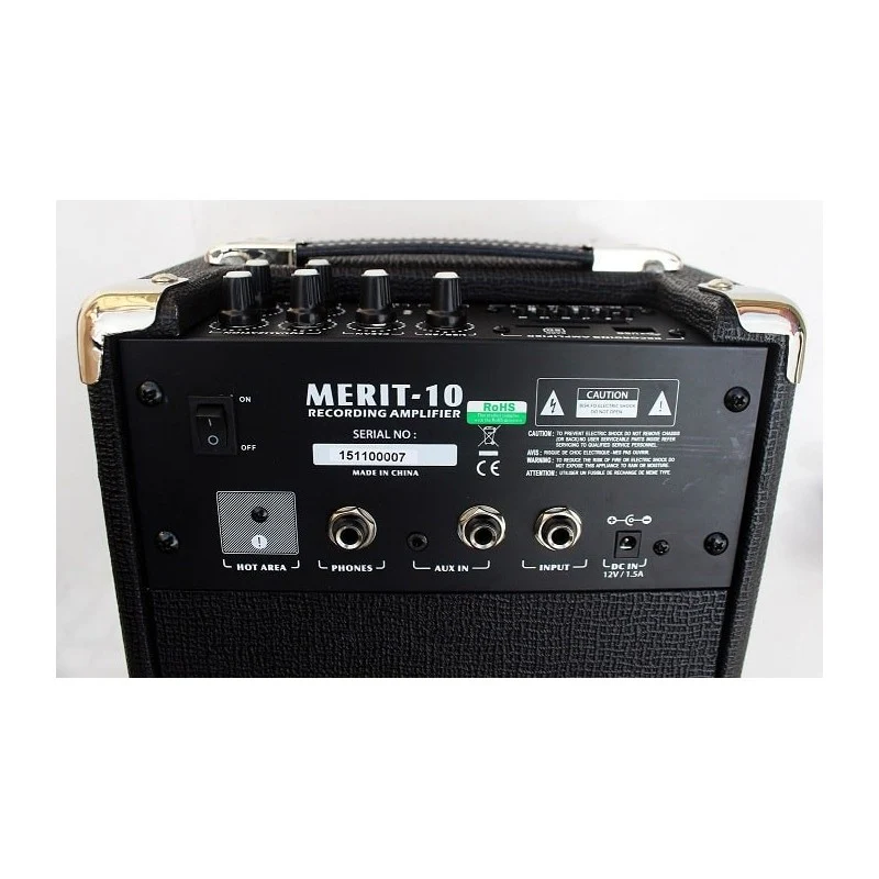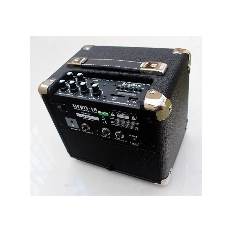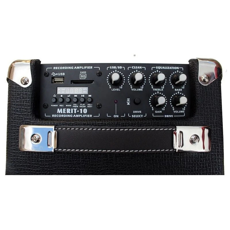 Amplificador Belcat Merit-10. 10W RMS. Entrada Jack Input mas auxiliar jack y mini-jack. Reproductor USB o tarjeta SD. Funciona con pilas o conectandolo a la red electrica con el adaptador T-9V-12V.