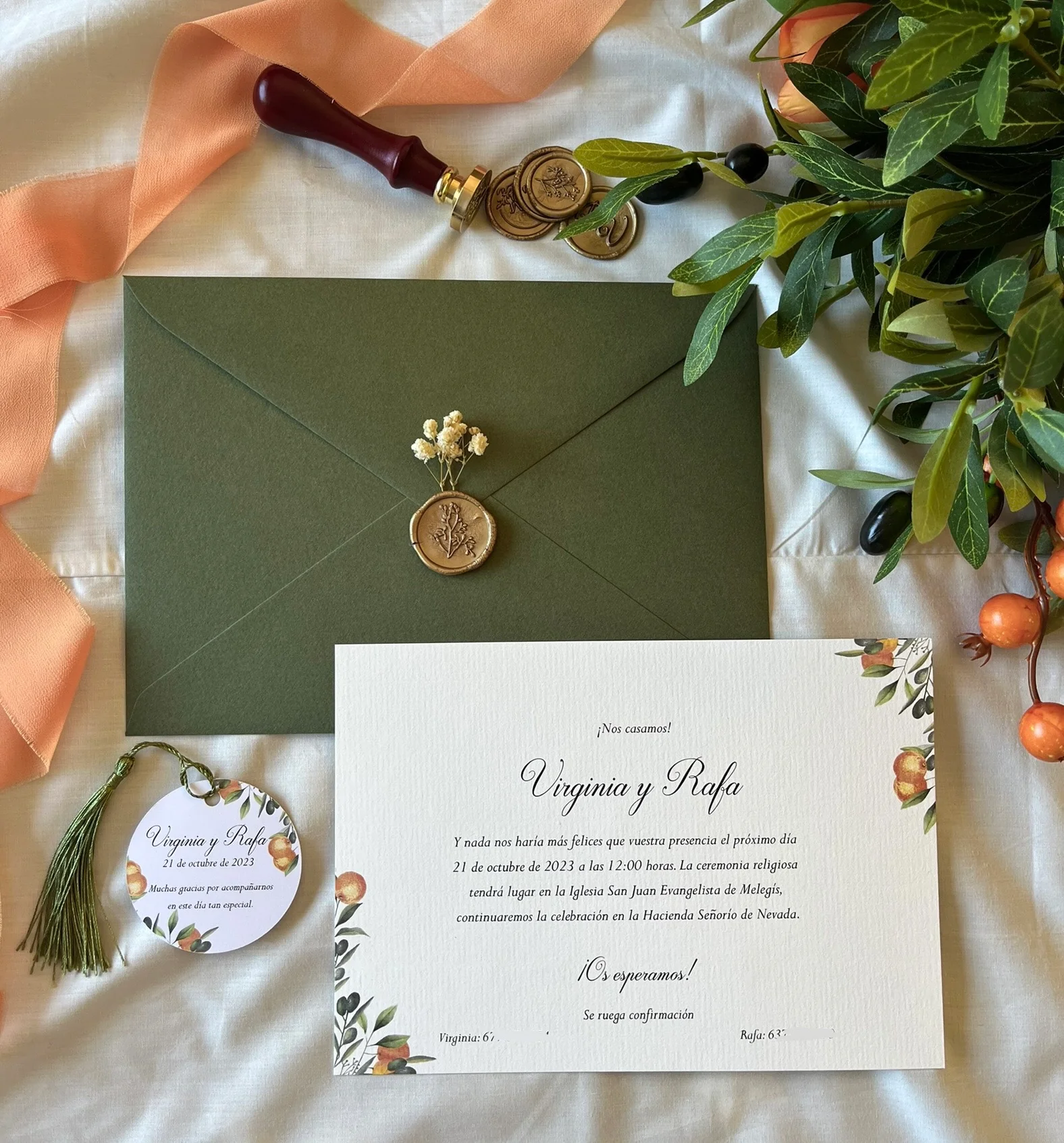 El precio incluye la invitación, los sobres van por separado, estaremos encantados de asesorarte de cuál es el más indicado para tu invitación.
