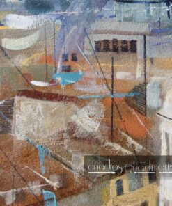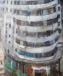 El espectador al observar la obra, descubrirá una búsqueda en la que no todo está resuelto de una misma forma. Los edificios, rígidos, fríos de equilibran con árboles cálidos, saturados, en un intento por contrastar dos lenguajes diferentes. Uno de ellos mucho más abstracto. Y provocar que el receptor no tenga toda la información de primeras, sino que se sumerja en la pintura y la vaya descubriendo poco a poco.