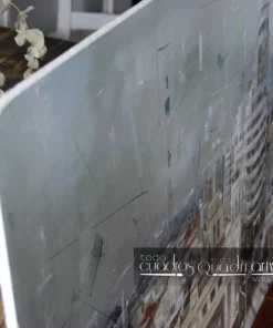 Ciertamente es importante el objeto utilizado, Madrid, el encanto de la Gran Vía, Cibeles, etc… Pero lo más importante es el equilibrio que se busca a través de este objeto, para llegar a una composición donde “hecho” y “desecho”, curvas y rectas, fríos y cálidos; se complementan unos a otros, otorgando a la obra una riqueza más profunda que la mera representación de una calle.