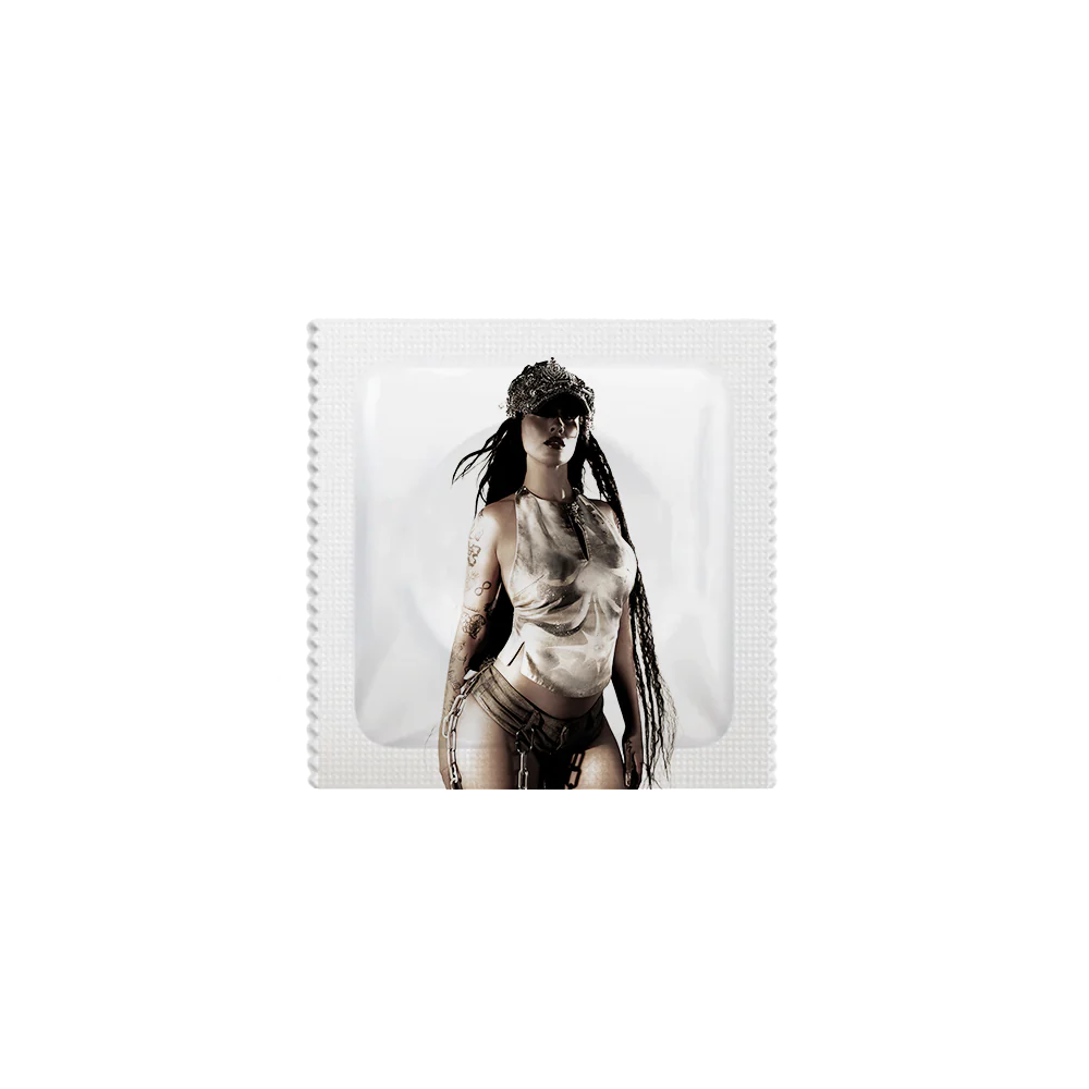 Preservativo con fotografía oficial de la gira de La Zowi.