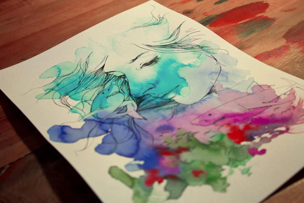 La lámina está impresa digitalmente a partir de la ilustración original. El papel es de acuarela de 300 gr de suave textura en formato A4: 29,7 x 21 cm.