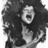 Lámina pintada en tinta china. La serie Black nos habla de doce espíritus felinos que se manifiestan en forma de mujer dando voz a la belleza negra.