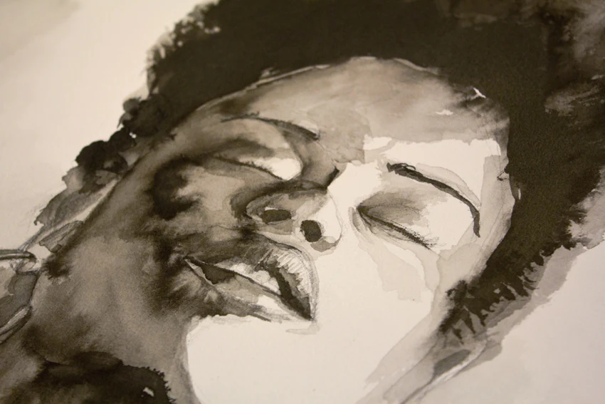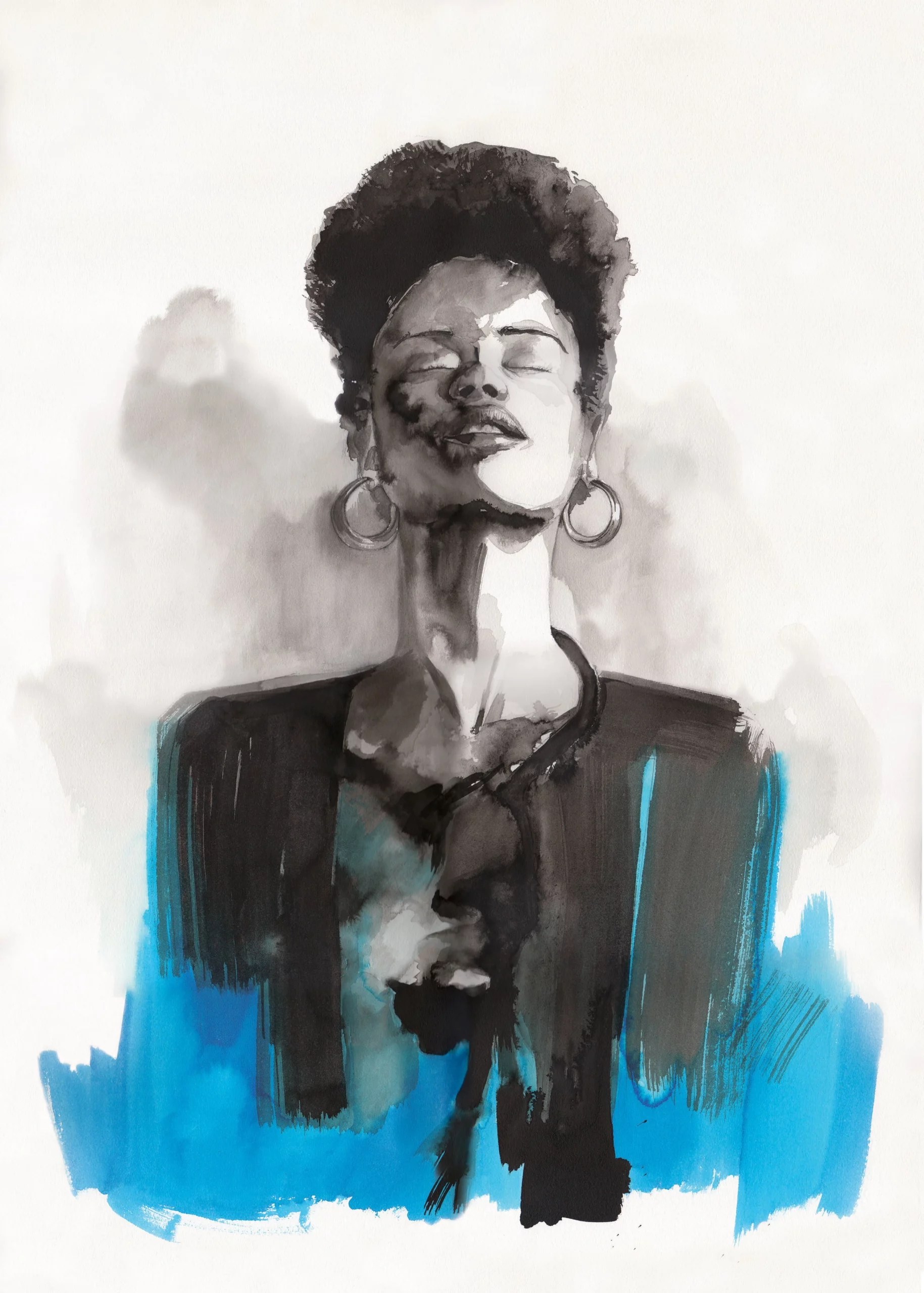 Lámina pintada en tinta china. La serie Black nos habla de doce espíritus felinos que se manifiestan en forma de mujer dando voz a la belleza negra.