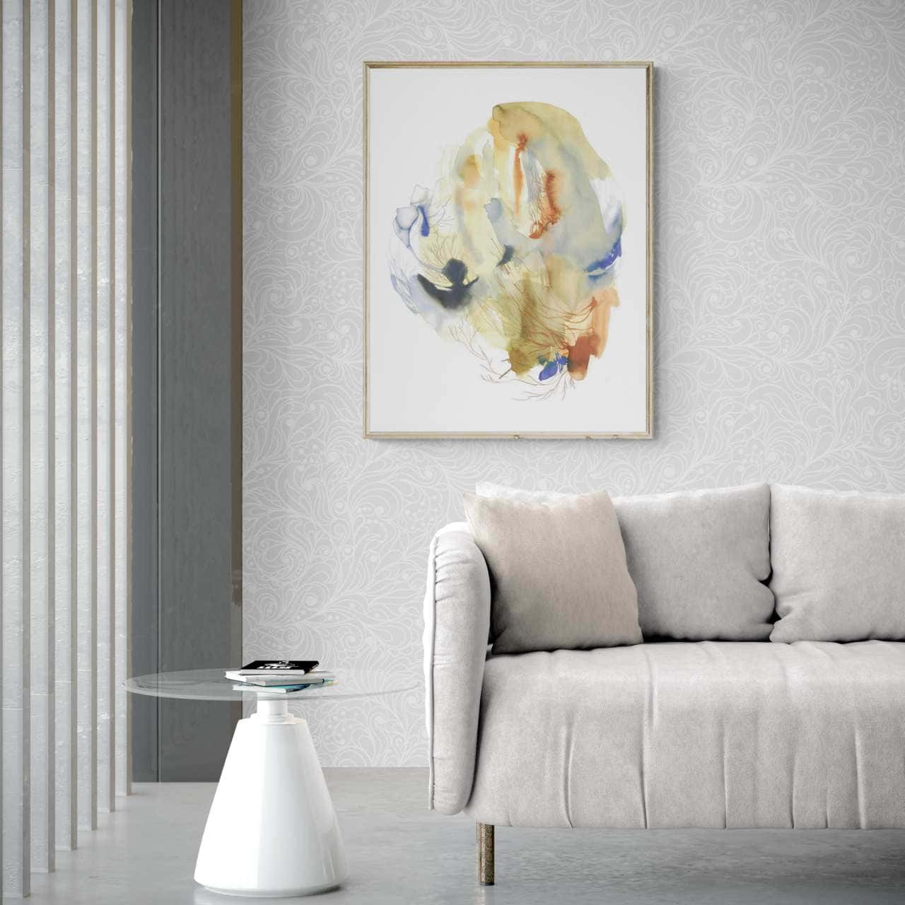 Obra abstracta realizada en acuarela. Inspirada en el hexagrama del I ching: La evolución.