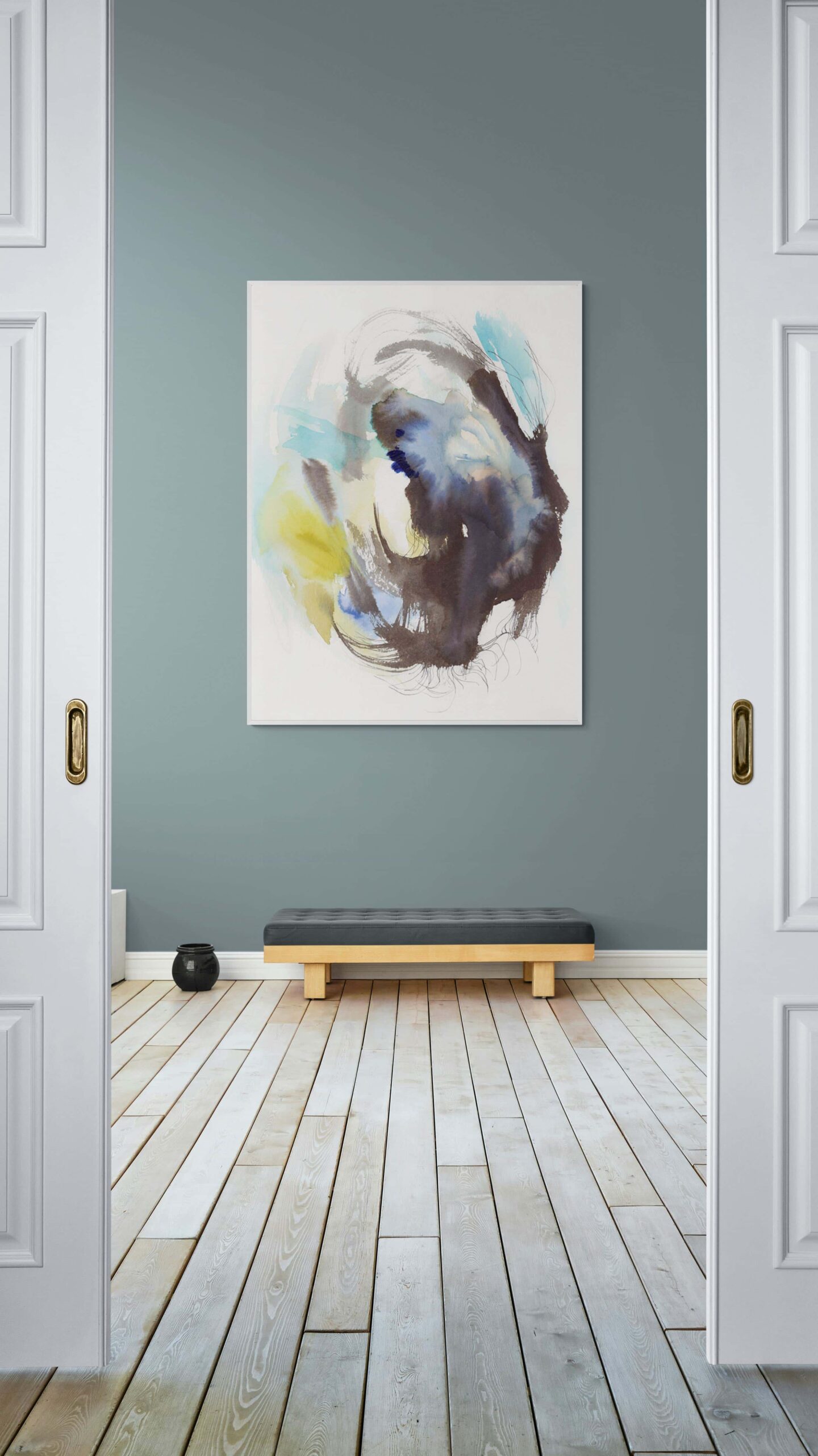 Obra abstracta realizada en acuarela. Inspirada en el hexagrama del I ching: La restricción.