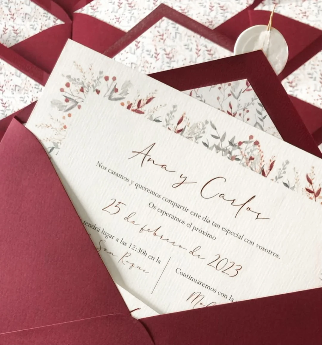 El precio incluye la invitación, los sobres y complementos van por separado, estaremos encantados de asesorarte de cuál es el más indicado para tu invitación.