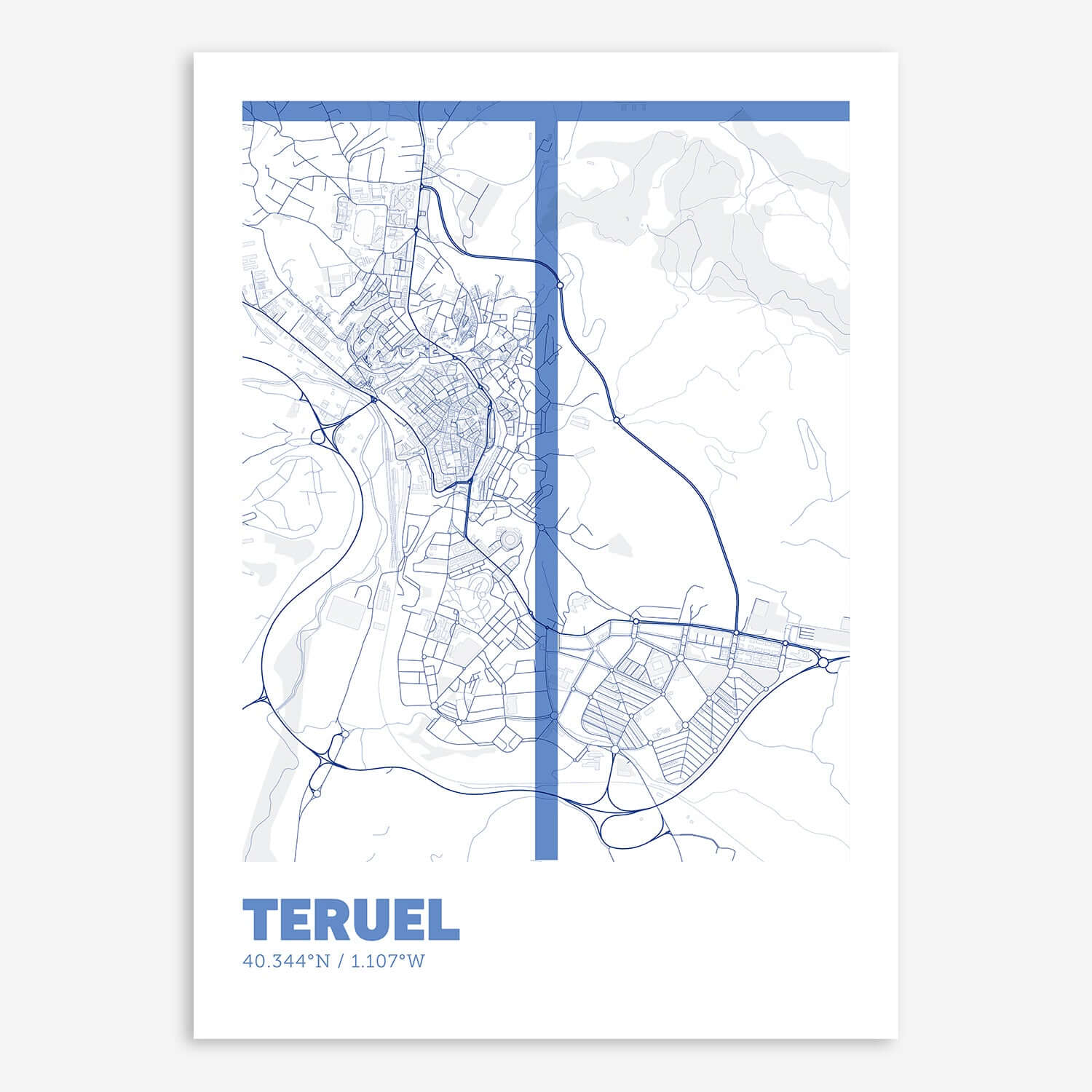 Personalize this Teruel Poster V07, designed with a composition of the map of Teruel and the letter T or purchase it with this graphic design ready to add to your cart. A special gift to decorate the walls of lovers of graphic design and typography.