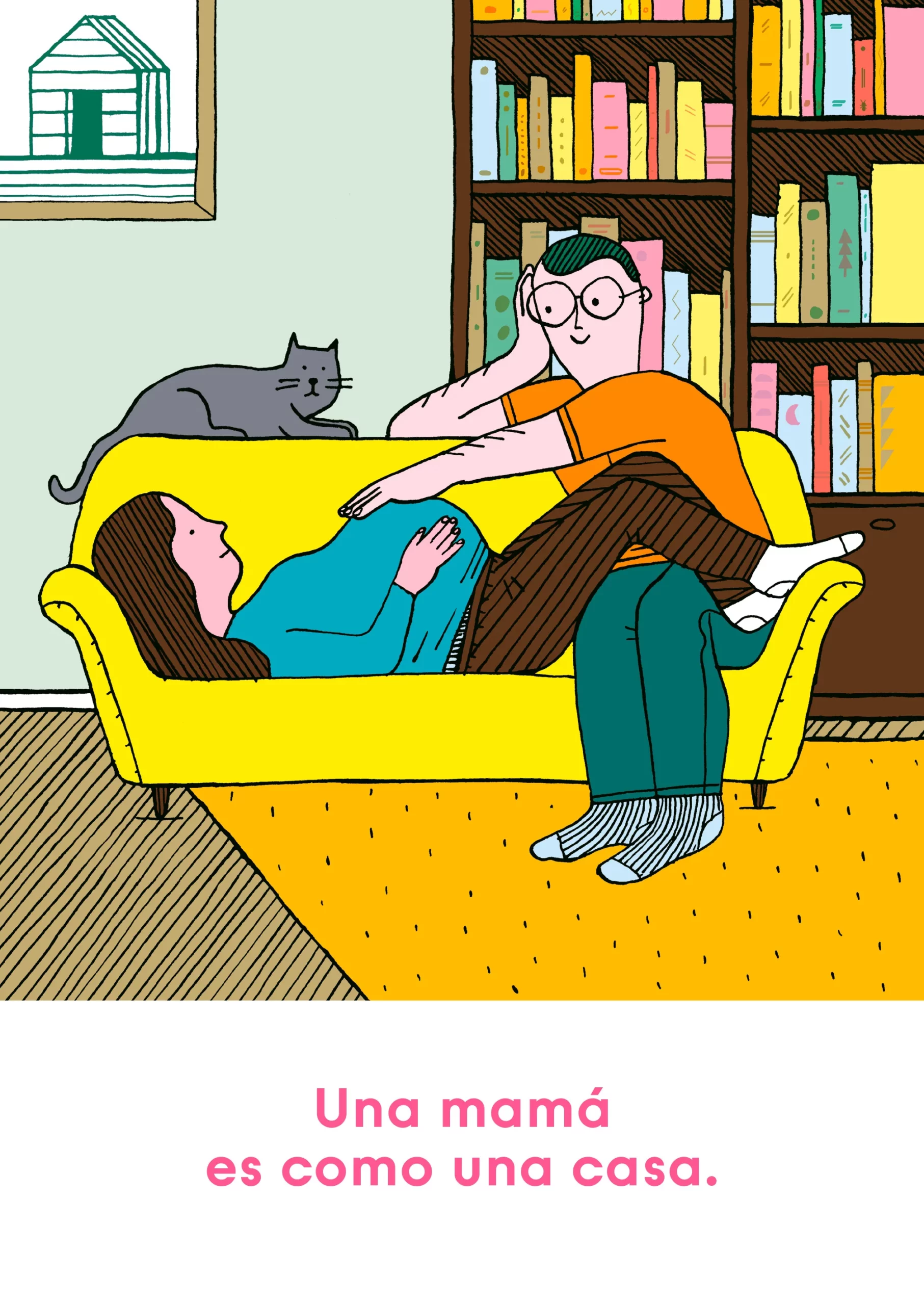 Disponible también en catalán -“Una mare és com una casa“-, euskera -“Ama bat etxe bat bezalakoa da“- y gallego -“Unha mamá é coma unha casa“-.